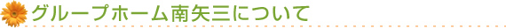 グループホーム南矢三は、地域社会へのつながりを大切にしながら、明るく優しい家族の心でのケアと専門的な知識や技術で、この施設で暮らす方々が自尊心を高められる充実した安らぎの生活を送っていただけるよう、心をこめてお手伝いをさせていただきます。