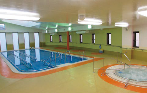 温水プールで水中歩行等のトレーニングができます。運動後ジャグジーにてくつろいでいただけます。