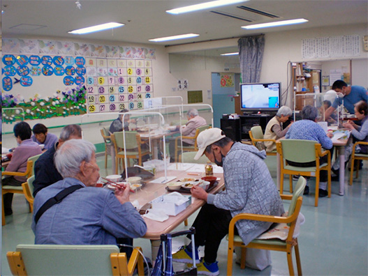 また、スタッフや他の利用者の方とおしゃべりすることで、自宅でのひきこもりや孤立を防ぎ、介護をされるご家族の負担を軽減することができます。